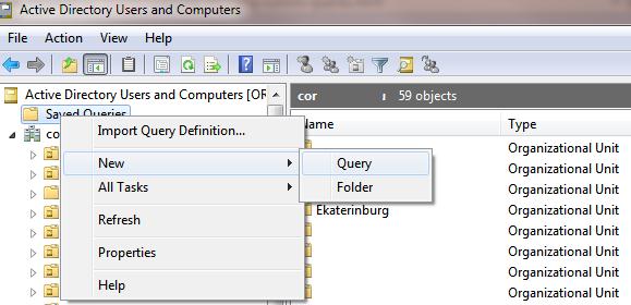 The Saved Queries in Active Directory Users and Computers (ADUC) mmc console allow you to create complex LDAP filters to select Active Directory objects. These queries can be saved, edited and copied to other computers. You can use the Active Directory saved queries for quickly and efficiently find AD objects based on a various criteria. Saved Queries can help you quickly perform common AD object administration tasks: display the list of all disabled accounts in a domain, select all users of a company who have mailboxes on a given Exchange server, etc.