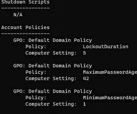 For example, the screenshot shows the domain password policy settings that are applied to the computer.