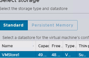 Select the datastore you created earlier, where the virtual machine’s configuration files and virtual hard disks will be stored.