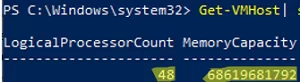 Get-VMHost| select LogicalProcessorCount, MemoryCapacity