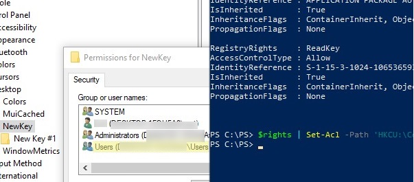 $rights | Set-Acl -Path 'HKCU:\Control Panel\Desktop\NewKey'