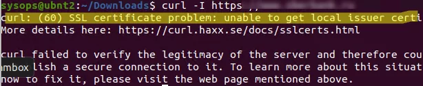 To check if your Linux host cannot verify (and therefore does not trust) the SSL certificate on a certain site, run the following command: