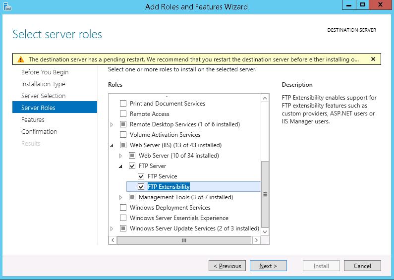 Install-WindowsFeature Web-FTP-Server