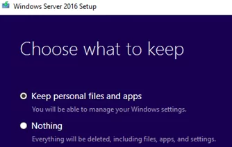 When i try to update the server, the option to ‘Keep personal files and apps’ is greyed out. Below i get the following message, ‘your files, apps. and settings can’t be kept because you’re installing an edition of Windows that’s different thna the once you’re currently using’.